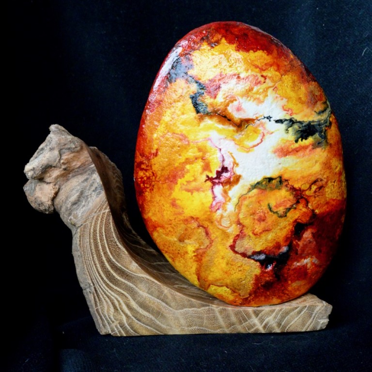 Pierre Dressée sur socle de bois, format de la pierre 12/17.